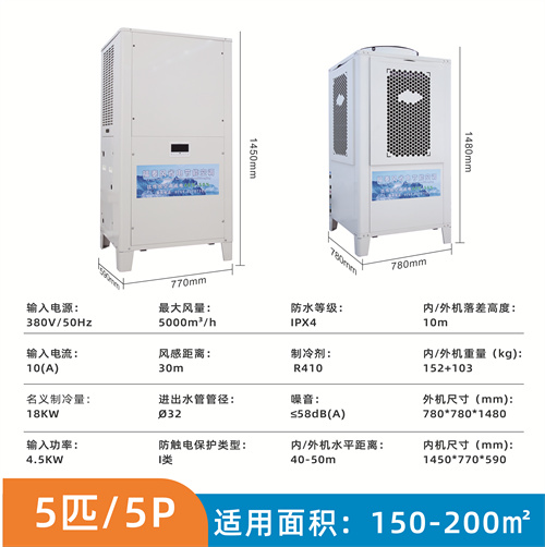 工业省电空调采用水冷、风冷、蒸发冷以及压缩机相结合的方式进行制冷降温。通过湿帘蒸发式冷凝技术给循环水降温,再流经内机的换热器。压缩机将冷媒压缩成高温高压的气态,并带走其热量,形成常温液态冷媒。随后,经过膨胀阀节流后,变成低温低压的液态冷媒,流入内机的蒸发器与室内热空气进行热交换,吹出冷风。这一过程周而复始,将能效比发挥到最大。