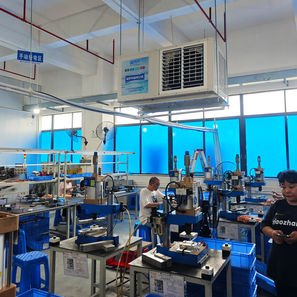 高温车间换了福泰风空调的第三天,车间里的温度就稳定在了26℃左右,工人师傅终于不用边擦汗边拧螺丝。跟传统空调直吹的干冷风不同,它的送风更柔和,不会对着人猛吹,还自带控湿功能,车间里不会像以前那样湿哒哒的,机床设备也没再出现过因受潮卡顿的情况。